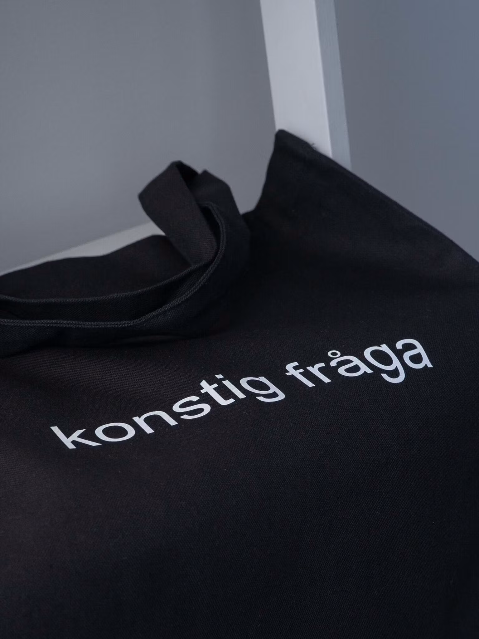 Konstig fråga – men inte en konstig tygpåse! För, det här är en helt vanlig svart tygpåse. Och egentligen behöver man väl inte säga mer än så. En påse som du kan bära alltifrån din dator till din sekatör i. Bror Wilhelm, som har använt den ett tag, hälsar att den också "funkar prima när man handlar falukorv eller fiskpinnar". På framsidan står det "konstig fråga".